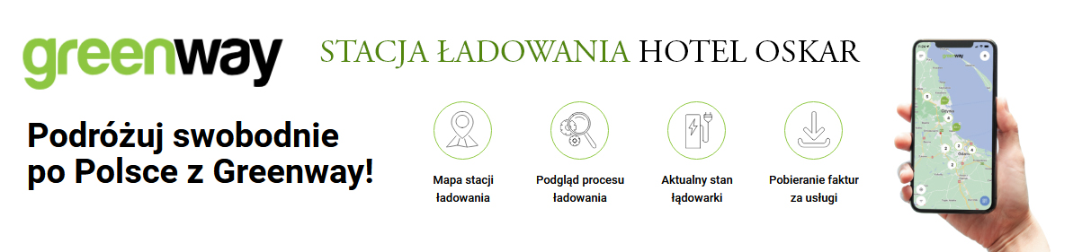 Hotel Oskar**** oferuje swoim Gościom możliwość ładowania aut elektrycznych. Zapewniamy nowoczesną infrastrukturę ładowania, dostępną przez całą dobę, co czyni nasz hotel idealnym miejscem dla osób podróżujących ekologicznymi środkami transportu. Zapraszamy do skorzystania z tej wygodnej usługi podczas Państwa pobytu u nas.